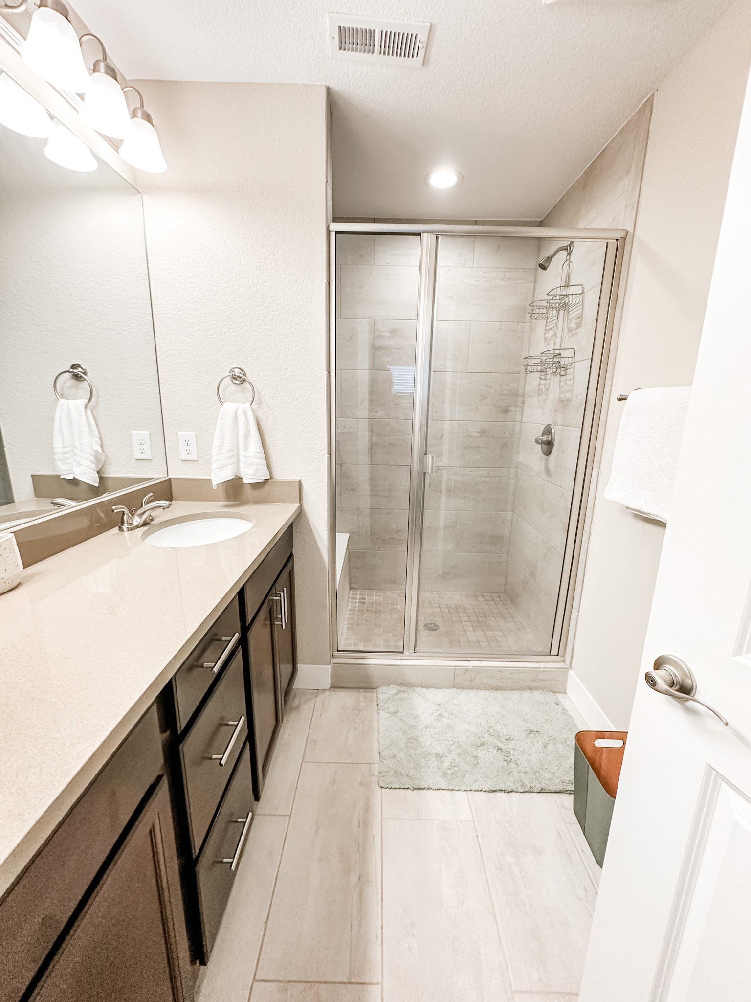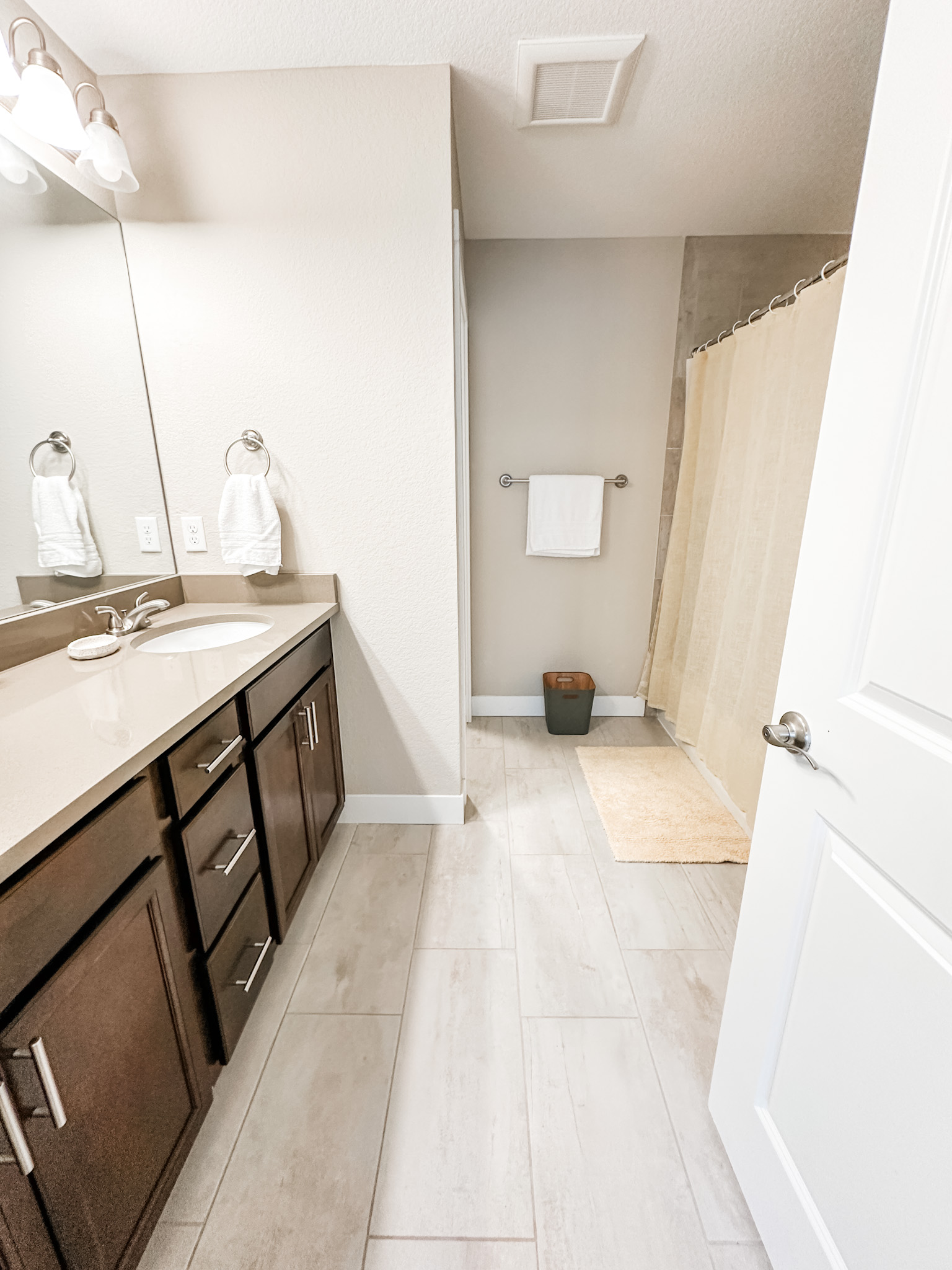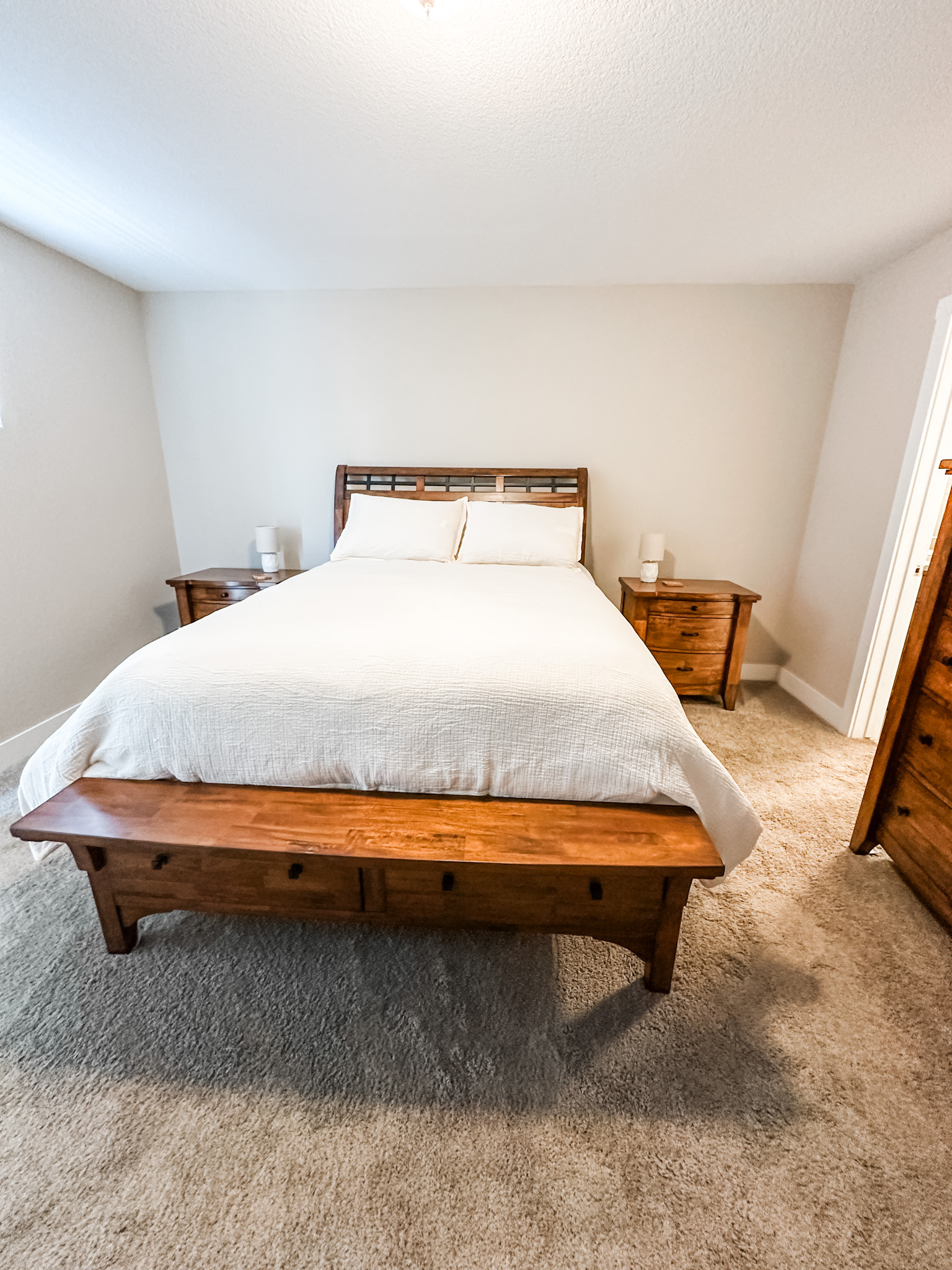 The primary suite includes a king-sized bed, ample closet space, and an ensuite bathroom. The additional bedroom is perfect for accommodating guests. Outside, you’ll enjoy a spacious patio for relaxation.