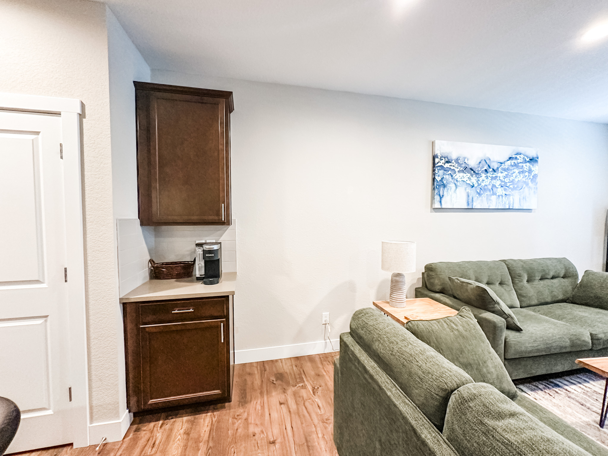 Upon entering, you’ll find a bright, open-concept living space featuring modern furnishings, wood flooring, and abundant natural light. The well-appointed kitchen comes equipped with stainless steel appliances, granite countertops, and all the essentials you need to cook and entertain with ease.