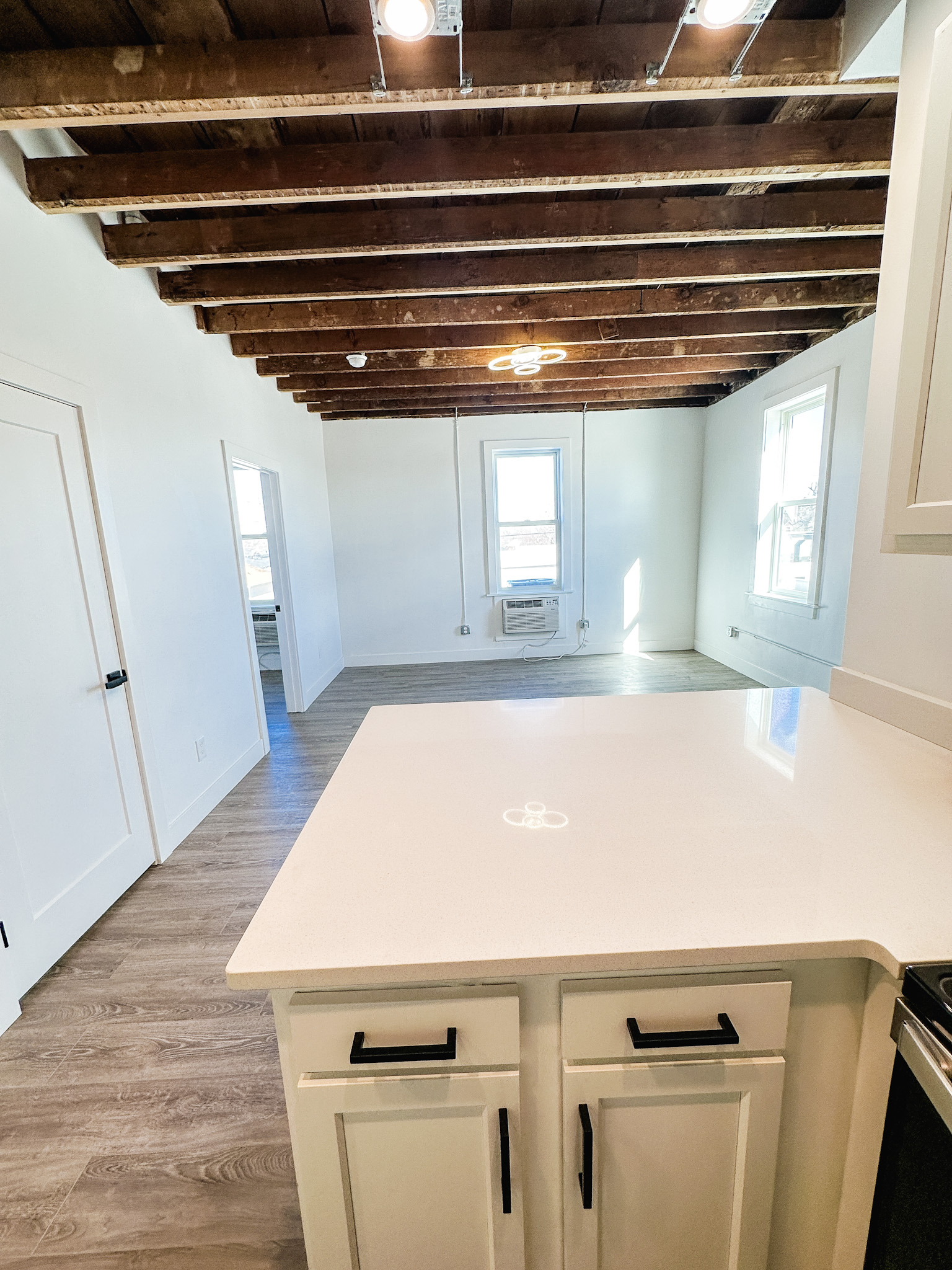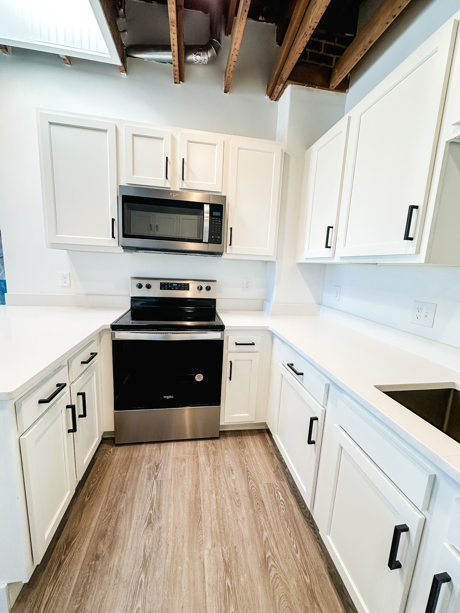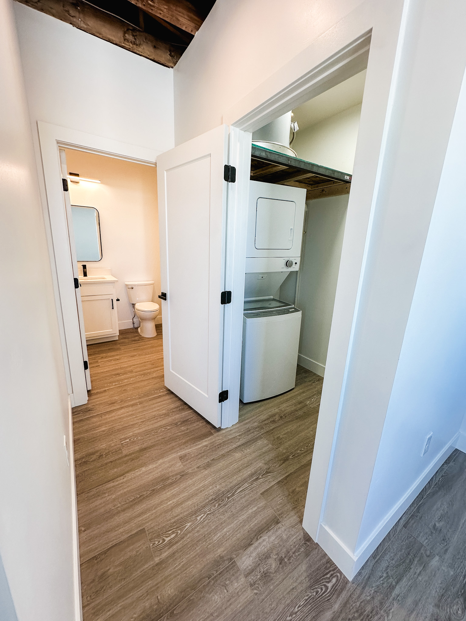 This loft style 1 bedroom apartment has been newly remodeled with amazing finishes. There is a large bathroom, large kitchen space with stainless steel appliances, white cabinets and countertops with breakfast bar. In-unit laundry is also included!